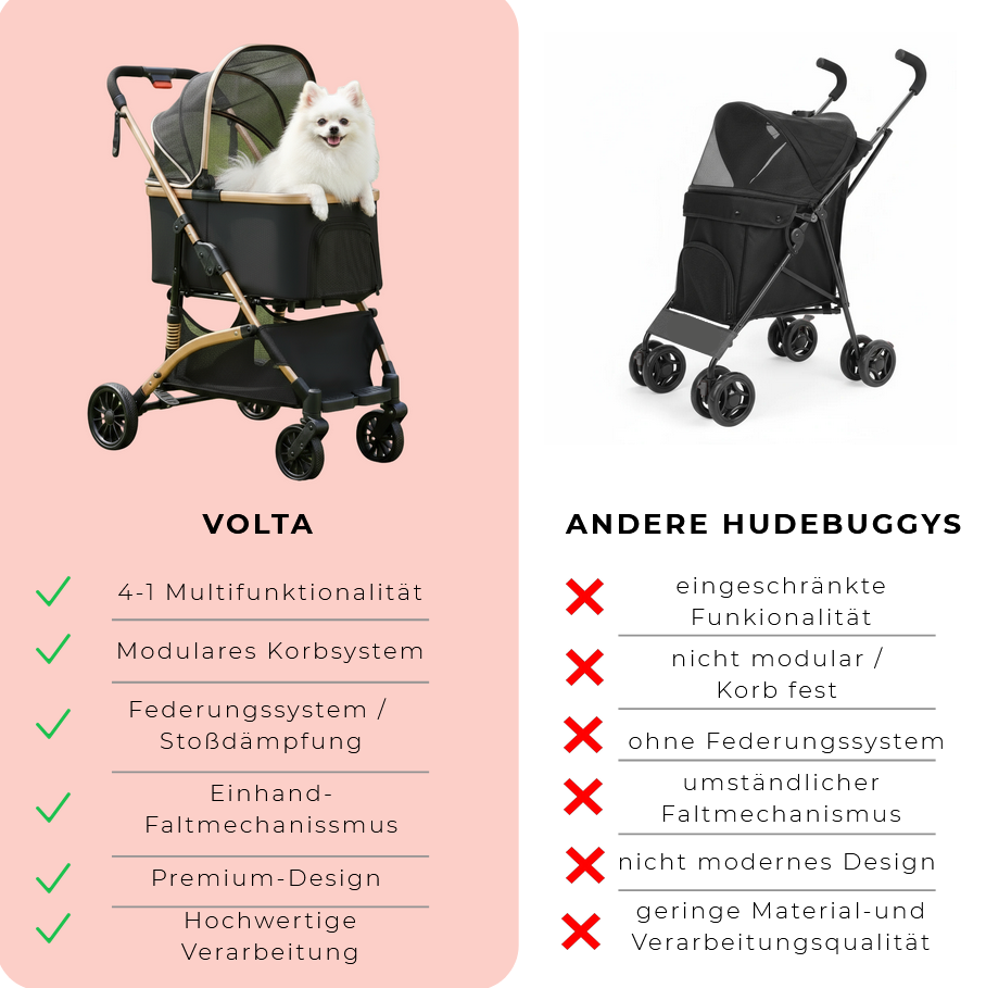 Wussten Sie schon? Mit dem Volta werden Sie nicht als "Hundebesitzer" wahrgenommen, sondern als stilvoller Gast, der alles im Griff hat.